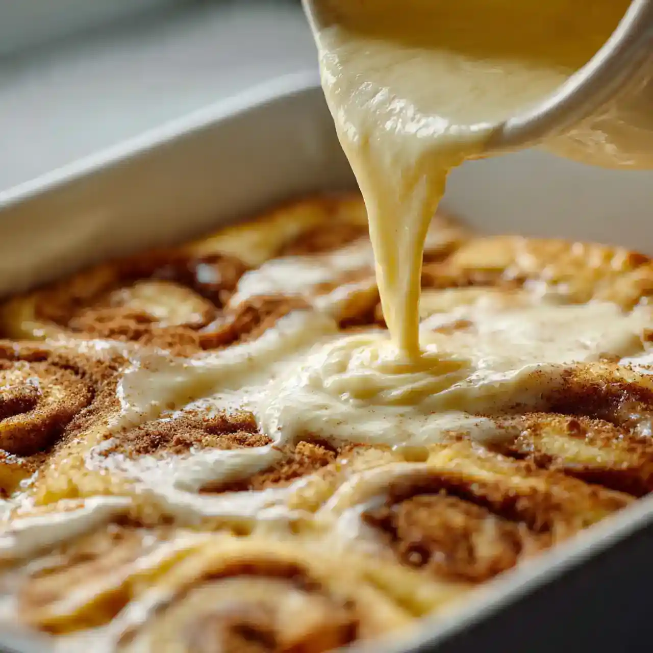 - Glaze: If using icing packets, warm them slightly and drizzle over the hot casserole. For the cream cheese glaze, beat cream cheese and butter until smooth, then mix in powdered sugar, milk, vanilla, and salt until pourable. Drizzle generously.