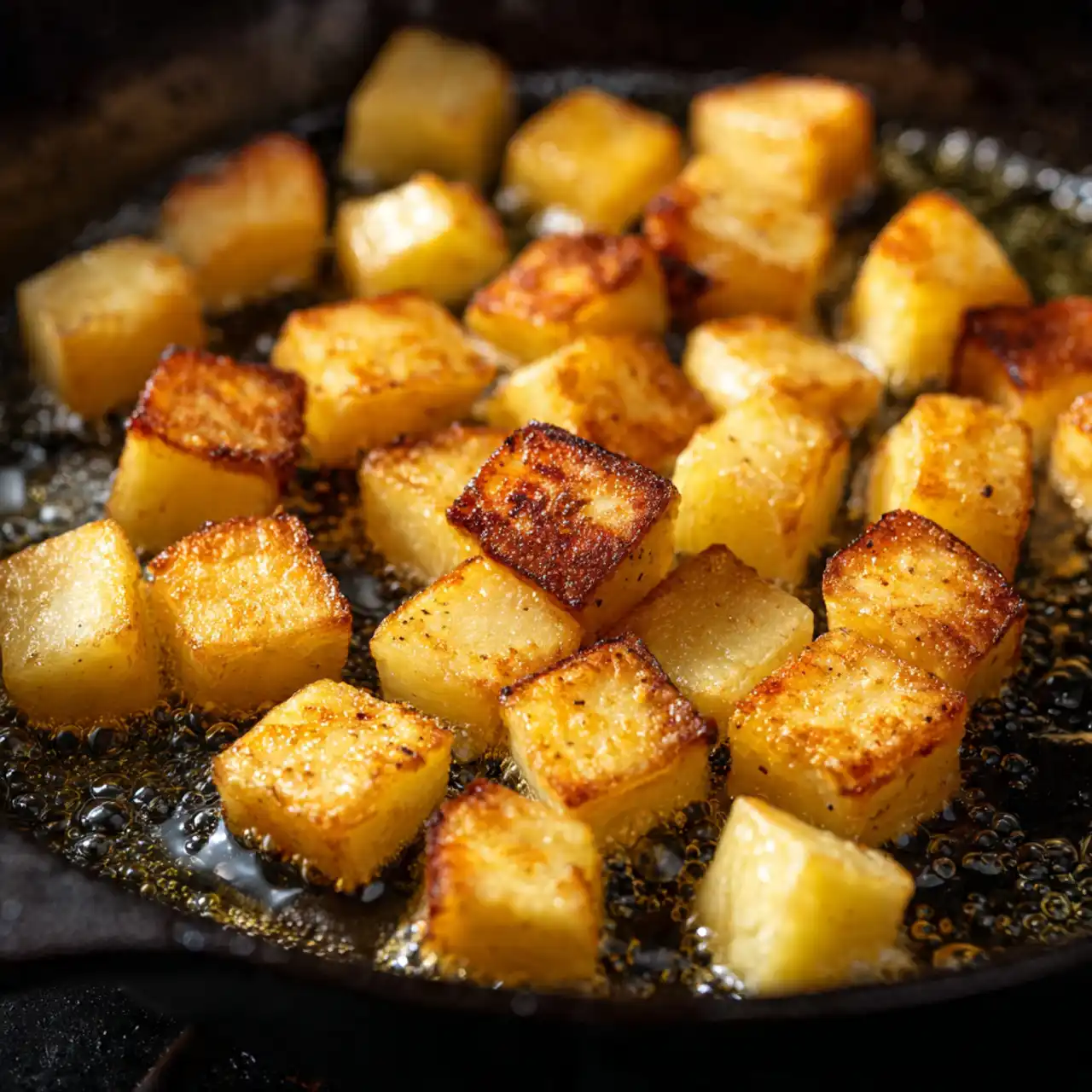 - Start the potatoes: Add the potatoes in a single layer.Don’t overcrowd the pan. Let them cook undisturbed for 4–5 minutes to build a golden crust on the first side.