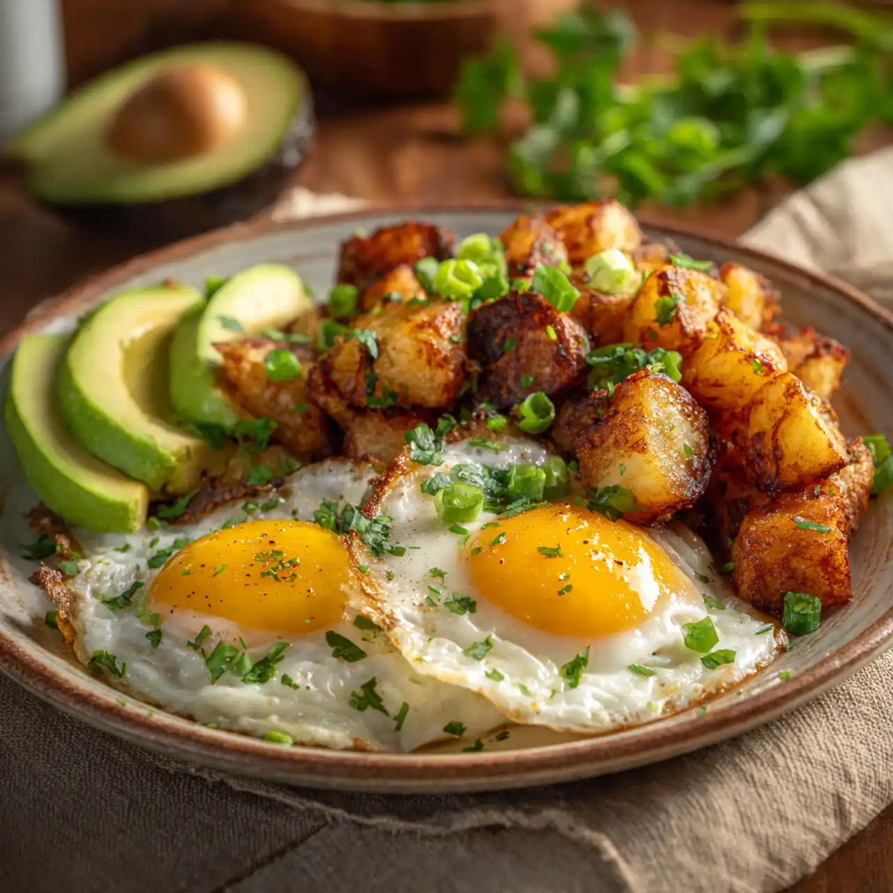 - Garnish and serve: Remove from heat and top with chopped parsley or green onions. Serve hot with eggs, bacon, or avocado.