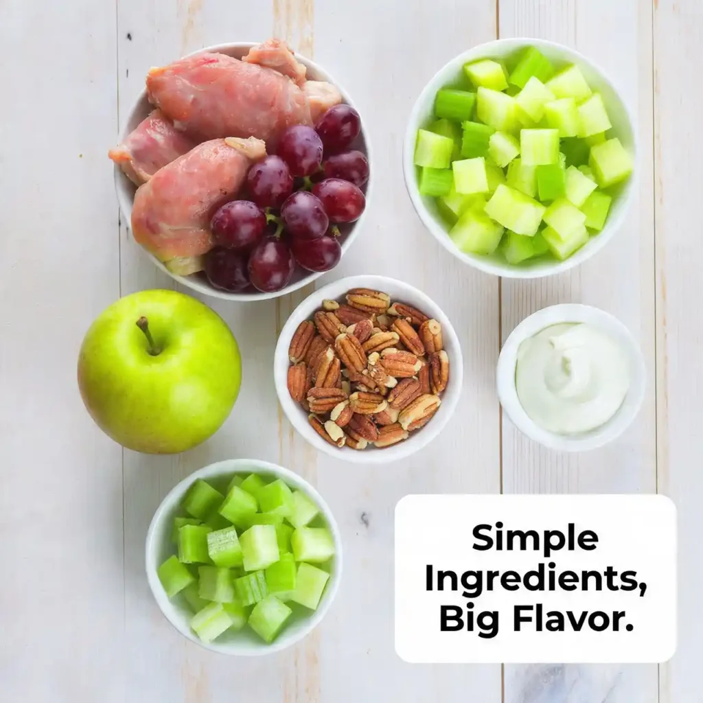 Every ingredient below is intentional. Don’t swap the mayo for Greek yogurt (that’s a different recipe) and don’t skip the pecans — that crunch is half the personality.